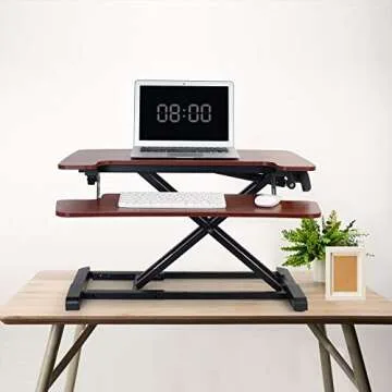 FLEXISPOT Stand up Desk Converter -28" Standing Desk Riser with Deep Keyboard Tray for Laptop (28", Mahogany, M7N)
