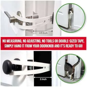 FlexLatch Cat Door Holder Latch - Bright White Cat Door Alternative Installs Fast Flex Latch Strap Let's Cats in and Keeps Dogs Out of Litter & Food. Safe Baby Proof One Piece No Measuring Extra Easy