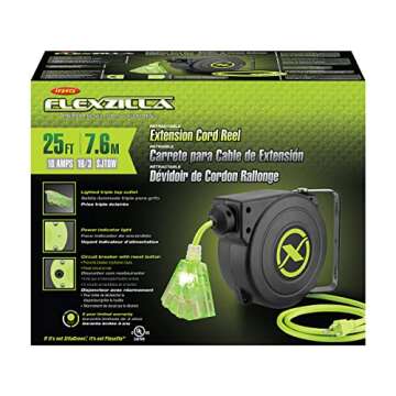 Flexzilla Retractable Extension 16/3 AWG 25' Electric Cord Reel, ZillaGreen, FZ8160253