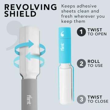 Flint XL Retractable Lint Roller for Clothes, Refillable and Reusable Pet Hair Roller with 140 Extra Tear-Off Sheets, Perfect Lint Rollers for Pet Hair Extra Sticky Light Grey