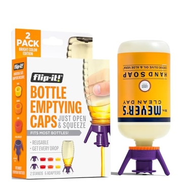 Show more Introducing the Flip-It! Bottle Emptying Kit, your ultimate solution to eliminate waste and maximize every drop of product you purchase. No more shaking, pounding, or awkwardly cutting bottles to retrieve the last remnants of your beloved lotions, shampoos, or sauces. This innovative kit comes complete with two base caps (38mm) and a variety of six adapters in three sizes: large (33mm), medium (28mm), and small (24mm). You can now flip up to two bottles at once, making it incredibly convenient for households requiring efficient product management.