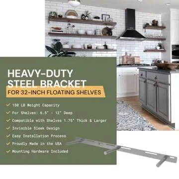 Floating Shelf Bracket - 32” Hidden Shelf Brackets, 150 LB Weight Capacity, Supports Wall Mounted Floating Shelves of Any Length, 3/4 Inch Industrial Solid Steel Support Rods Walnut Wood Works