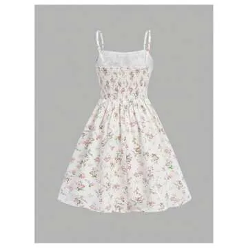 Floerns Girl's Floral Print Sleeveless Ruched Ruffle Hem A Line Cami Short Dress White Ivory 10Y