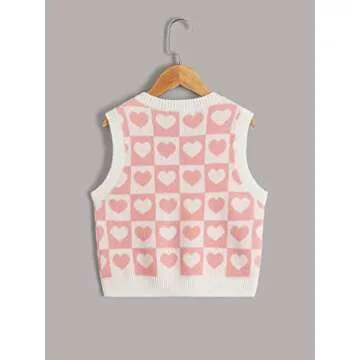 Introducing the stunning heart plaid print knitwear sweater vest tank top - a must-have addition to any young fashionista's wardrobe! Perfect for various occasions, this adorable vest is designed with a v-neck and sleeveless style that exudes both charm and comfort. The fabric boasts a slight stretch, ensuring a comfortable fit that allows for ease of movement. The versatility of this tank top is unmatched, making it suitable for spring and fall...