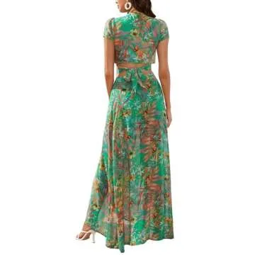 Show moreTransform your summer wardrobe with the exquisite Floerns Women’s 2 Piece Boho Twist Front Top and High Split Maxi Skirt Set. This enchanting outfit captures the essence of chic elegance and carefree comfort. The set features a beautifully crafted V-neck crop top that ties effortlessly in the front, enhancing your silhouette, paired perfectly with a high-slit maxi skirt that adds a touch of drama and flair. Every detail of this ensemble has been thoughtfully designed to evoke a sense of freedom and style, making it perfect for any fashionista ready to embrace their individuality.