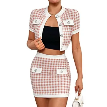 Show moreElevate your wardrobe with the Floerns Women's 2 Piece Outfit, a stunning combination of a button-front crop top jacket and a bodycon skirt set in a delightful pink gingham print. This ensemble is not just about aesthetics; it's crafted with fabric that offers some stretch, ensuring a comfortable fit for various body types. Perfect for those who value both style and comfort, this set is versatile enough for casual occasions, beach outings, vacations, work, travel, and even outdoor activities or parties. The care instructions are straightforward: machine or hand wash in cold gentle, line dry, and do not bleach, making it a practical addition to your collection. Before ordering, please refer to the Product Measurement in the third image to select your size accurately, ensuring the perfect fit for your body.