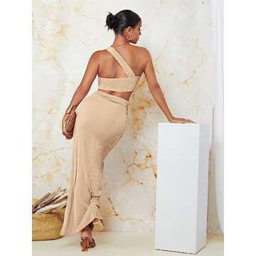 Show moreIntroducing the Floerns Women's 2 Piece Outfit, a stunning combination of style and comfort designed for the modern woman! This exquisite two-piece set features a chic one-shoulder, sleeveless crop top with a flattering twist front that highlights your waistline beautifully. The accompanying split thigh skirt perfectly balances sophistication and allure, making it an ideal choice for a variety of occasions. Whether you're heading to the beach, attending casual outings, or planning a tropical vacation, this outfit's versatility ensures you'll look fabulous anywhere you go.