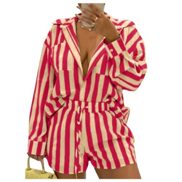 Show moreIntroducing the Floerns Women's 2 Piece Outfit Striped Long Sleeve Blouse Top with Shorts Set – your new go-to ensemble for every occasion! This trendy yet timeless outfit features a chic striped print combined with a sophisticated long sleeve blouse and comfortable shorts, making it perfect for both casual outings and formal events. The fabric is designed to keep you feeling fresh and comfortable throughout the day, while its elegant silhouette enhances your natural shape. Whether you’re dressing up for a business meeting or enjoying a summer brunch with friends, this versatile outfit has got you covered.