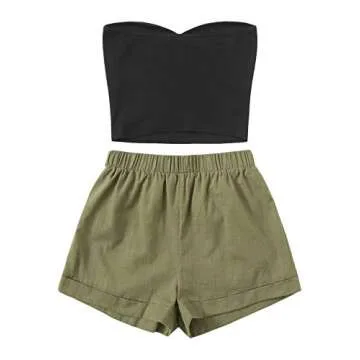 Floerns Women's 2 Piece Outfit Summer Plain Tube Crop Top with Shorts A Multi S
