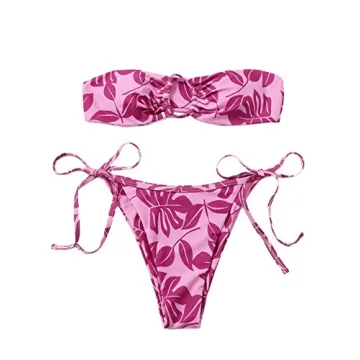 Show moreIntroducing the summer essential that every fashionista needs in her closet – the exquisite Floerns Women's All Over Print Tube Bandeau Bralette Tie Side Bikini Swimwear. Radiating vibrant energy with its striking pink hue adorned with a lively all-over print, this bikini is meticulously designed to flatter every body shape, providing that perfect beach-ready look. Crafted from high stretch fabric, this bikini not only ensures a comfortable and snug fit but also accentuates your curves beautifully. The bandeau bralette top allows you to soak up the sun without worrying about unsightly tan lines, making it a perfect choice for beach lovers eager for that golden glow.