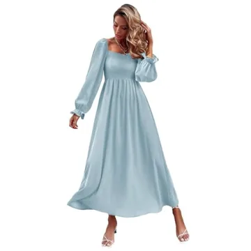Floerns Women's Boho Floral Print Square Neck Flounce Sleeve A Line Long Dress Dusty Blue