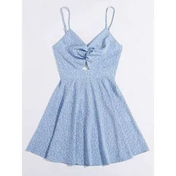 Floerns Women's Boho Floral Print Twist Front Cami A Line Mini Dress Bonnie Blue S