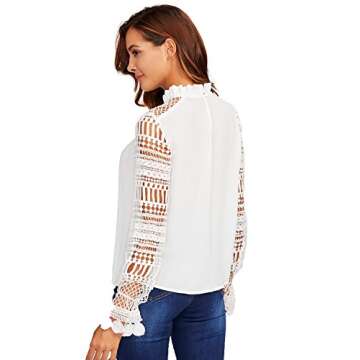 Floerns Women's Bow Tie Ruffle Mock Neck Lace Long Sleeve Blouse Tops White S
