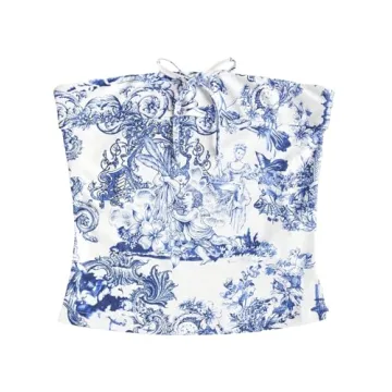 Show moreIntroducing the Floerns Women's Casual Strapless Bandeau Graphic Print Bow Front Corp Tube Top, a stunning blend of style and comfort that'll elevate your summer wardrobe. Designed in a captivating blue and white graphic print, this slim fit tube top is expertly crafted with a fabric that boasts a slight stretch, ensuring an effortlessly flattering silhouette. Whether you're planning a casual outing, a holiday bash, or a cozy day at home, this top adapts beautifully to any occasion, making it a versatile staple in your clothing collection.