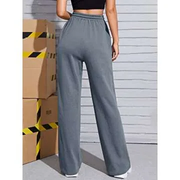 Floerns Women's Causal Drawstring High Waist Baggy Straight Wide Leg Sweatpants with Pockets Dark Grey M