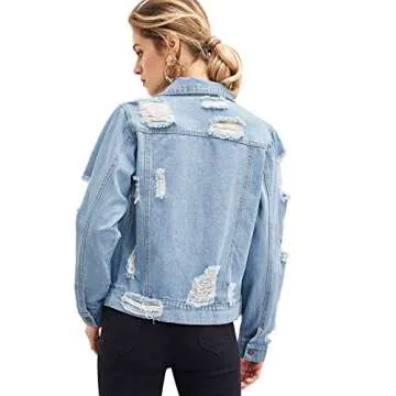 Floerns Women's Causal Long Sleeve Wash Distressed Jean Denim Jacket A Blue S