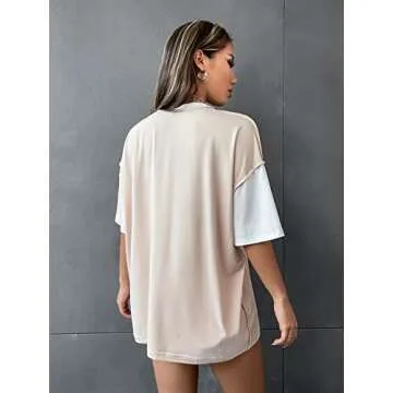 Floerns Women's Colorblock Stitching Trim Short Sleeve Crew Neck Loose T-Shirt Top Light Brown S