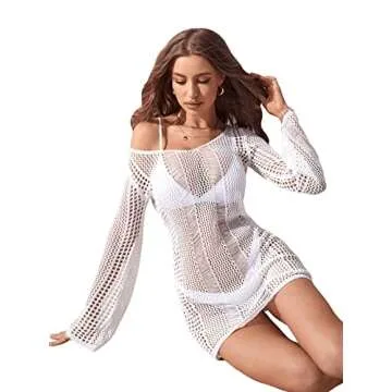 Show more Introducing the ultimate beach companion—a gorgeous sheer mesh cover up dress designed for those blissful summer days by the water. Crafted from high-quality, slightly stretchy fabric, this lovely long sleeve piece features a v-neck design and an elegant tie back to enhance your silhouette. With its hollow-out detailing, it delicately drapes over your beachwear, offering a perfect blend of style and comfort. Whether you're lounging by the pool, strolling along the seaside, or getting ready for an exciting beach party, this cover-up is both functional and fashionable, ensuring you look chic no matter the occasion.
