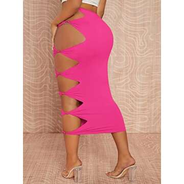 Floerns Women's Cut Out High Waist Knit Side Bodycon Pencil Long Skirt Hot Pink S