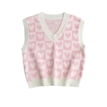 Floerns Women's Cute Heart Print V Neck Sleeveless Sweater Vest for Kids