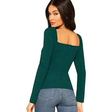 Floerns Women's Elegant Long Puff Sleeve Wrap Neck Blouse Tops Green M