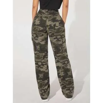 Floerns Women's Flap Pocket Cargo Pants High Waist Straight Leg Denim Jeans Camo Petite XS