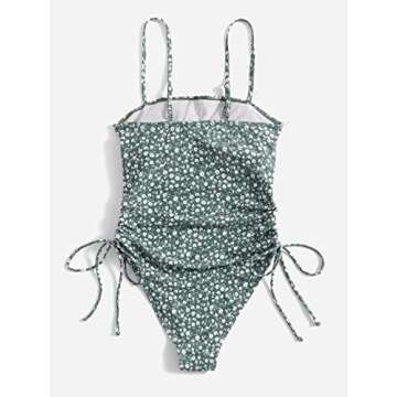 Floerns Women's Floral One Piece Swimsuit Tummy Control Scoop Neck Drawstring Monokini Bathing Suit Swimwear Dark Green