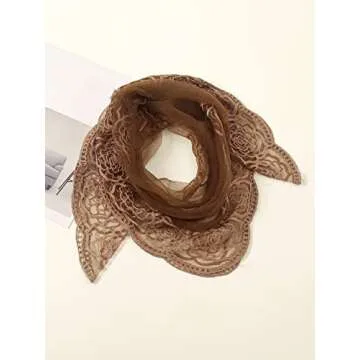 Floerns Women's Flower Embroidery Hair Scarf Headband Sheer Lace Hair Bandana Rust Brown One Size