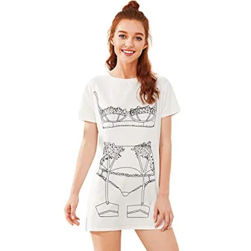 Floerns Women's Funny Lingerie Nightgown Cute Print Tshirt Sleepdress White M