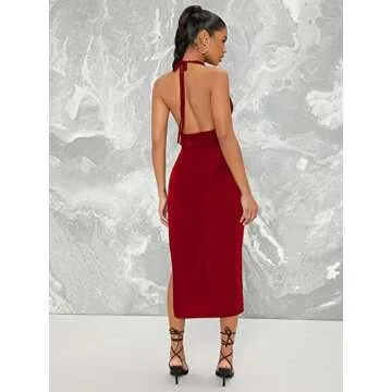 Floerns Women's Halter Neck Sleeveless Split Thigh Party Bodycon Long Dress Wine Red S