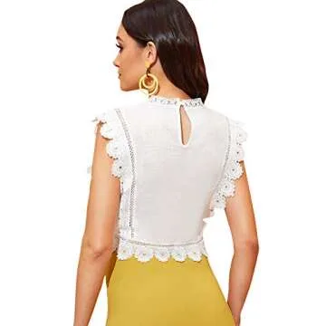Floerns Women's Mock Neck Guipure Lace Trim Embroidery Blouse Tops A White M