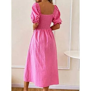 Floerns Women's Off Shoulder Boho Floral Print Split Long A Line Dress Pink S