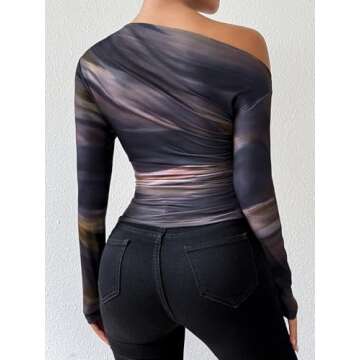Floerns Women's Off Shoulder Tops Y2k Going Out Tops for Women Trendy Long Sleeve Asymmetrical Ruched T Shirts Tops Brown M