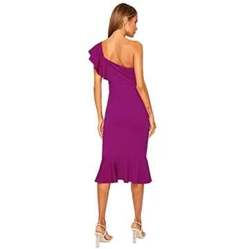Floerns Women's Off The Shoulder Split Ruffle Hem Bodycon Midi Dress Purple-Thin M