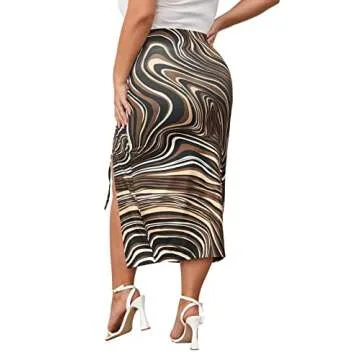 Floerns Women's Plus Size Leopard Drawstring Ruched Split Thigh Midi Skirt Chocolate Brown 2XL