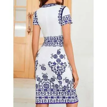 Floerns Women's Porcelain Print Work Sheath Business Pencil Dress Beige M