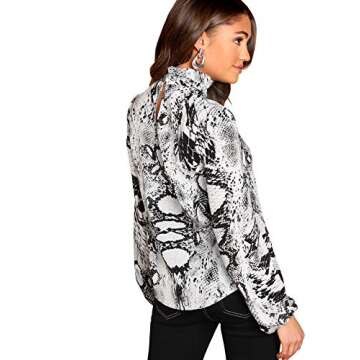 Floerns Women's Printed High Collar Mock Neck Lantern Long Sleeve Blouse Top Multi Snakeskin L