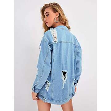 Floerns Women's Ripped Distressed Casual Long Sleeve Denim Jacket Blue B S