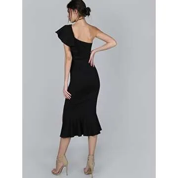 Floerns Women's Ruffle One Shoulder Split Midi Party Bodycon Dress Black S