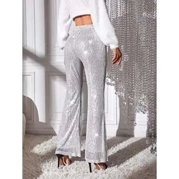 Floerns Women's Sequin High Waist Flare Leg Pants Bell Bottom Club Trousers Silver S