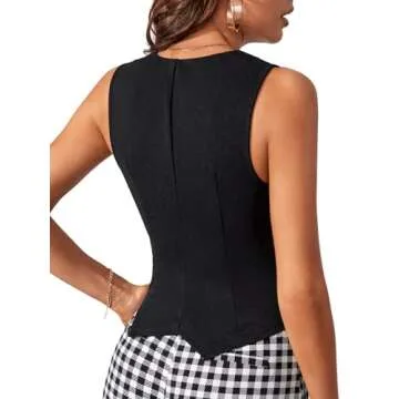 Show moreIntroducing the luxurious and stylish Floerns Women's Sleeveless V Neck Single Breasted Vest Crop Blazer Coat Jacket, your new go-to piece for layering this season! Crafted with meticulously chosen materials, this chic vest blazer melds comfort with elegance, making it perfect for both casual outings and semi-formal events. Its versatile design features a sharply tailored V neck and a single-breasted front, offering a flattering silhouette that accentuates your figure beautifully. Whether you pair it with trousers for a polished look or a casual skirt for a laid-back vibe, this vest is designed to elevate your outfit effortlessly.