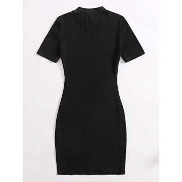 Floerns Women's Solid Rib-Knit Mock Neck Short Sleeve Bodycon Dress Black XS