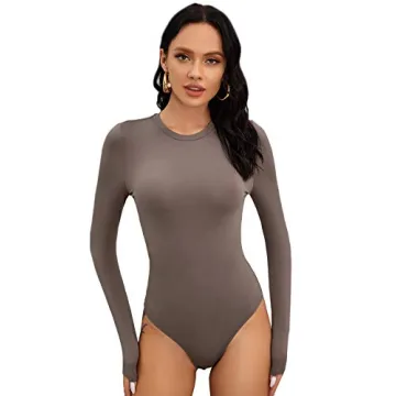 Show moreDiscover the perfect blend of style and comfort with the Floerns Women's Solid Round Neck Long Sleeve Fitted Bodysuit Jumpsuit. Expertly crafted with a slight stretch, this sleek bodysuit embraces your curves while offering a snug yet flattering fit. Designed in a rich brown color, it features a round neck and long sleeves, making it an ideal choice for layering or standalone wear during spring and fall. The fabric is soft against the skin, ensuring you feel great whether you're heading to brunch or a casual night out.