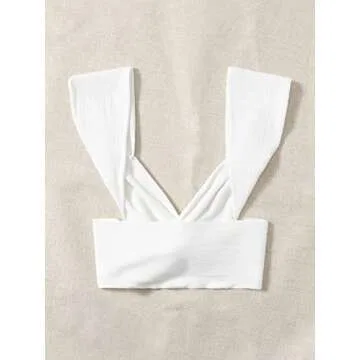 Floerns Women's Solid Twist Front Sweetheart Neck Cap Sleeve Backless Crop Top A White M