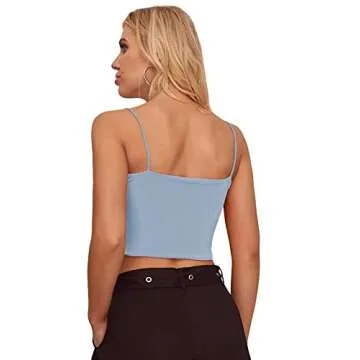 Floerns Women's Spaghetti Strap Sleeveless Cut Out Rave Tube Crop Cami Neon Top Blue M