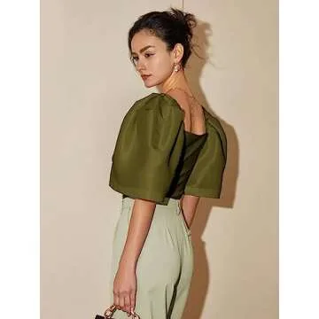 Show moreIntroducing the Floerns Women's Square Neck Puff Short Sleeve Elegant Blouse Crop Top in a stunning olive green hue—ideal for those who want to exude elegance and style at any occasion. Crafted with a focus on quality, this blouse features a beautifully structured square neckline, adding a touch of sophistication to your outfit. The puff short sleeves not only provide a fashionable silhouette but also ensure comfort and ease of movement. Made with high-quality fabric that maintains its unique shape, this top perfectly balances style and practicality, making it a go-to choice for any fashion enthusiast.