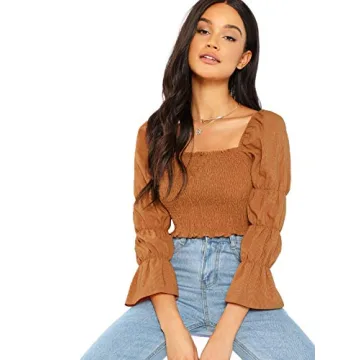 Show moreIntroducing the Floerns Women's Square Neck Puff Sleeve Shirred Blouse Crop Top, a stunning addition to your wardrobe, designed for versatility and style. Crafted from a high-quality fabric that boasts just the right amount of stretch, this blouse provides a flattering slim fit that hugs your silhouette beautifully. With its eye-catching square neckline and fashionable puff sleeves, this top exudes femininity while ensuring your comfort for a variety of occasions. Whether you're dressing it up for a night out or keeping it casual for a day in the city, this crop top has got you covered.