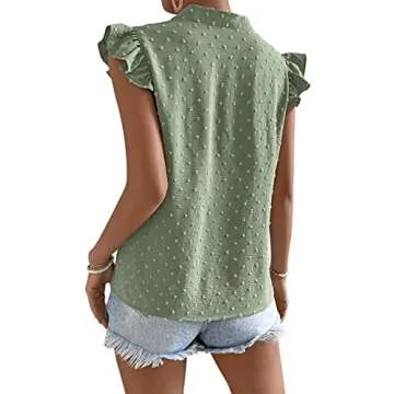 Show moreStep out in style with the Floerns Women's Striped Notched V Neck Ruffle Cap Sleeve Blouse Tops, designed to blend comfort and chic aesthetics seamlessly. This beautiful top features stunning green Swiss dots embellished on a soft fabric that promises a delightful wearing experience. With its notched V neck, elegant ruffle cap sleeves, and playful striped design, this blouse is perfect for fashion-forward women looking to elevate their casual wardrobe. Whether you’re dressing it up for a brunch or keeping it laid-back for an outdoor get-together, this blouse is the versatile addition you need.