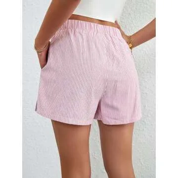 Floerns Women's Striped Print Elastic High Waist Wide Leg Casual Shorts Red and White M