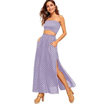 Show moreIntroducing the Floerns Women's Summer Printed 2 Piece Outfit—where comfort meets style! This exquisite set includes a stylish crop tube top paired with a chic split long skirt, ideal for any summer occasion. Constructed from lightweight and breathable fabrics, this outfit provides a perfect balance of flair and comfort, making it your go-to choice for sunny days. Available in a stunning purple hue that skews towards a lovely lavender-gray, this set beautifully flatters your figure, while its flowy design ensures you stay cool during warmer months.